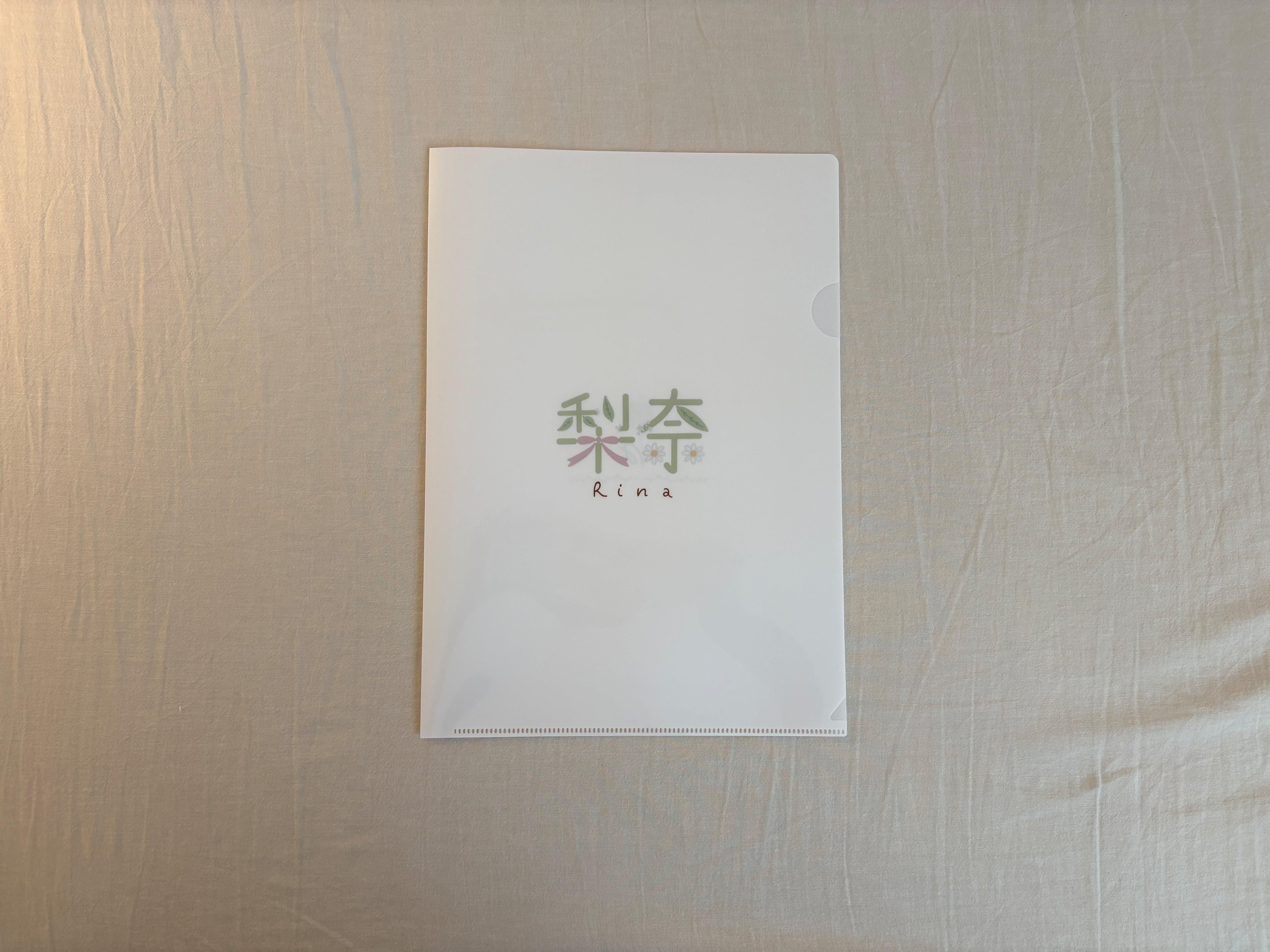 梨奈らしいお花やリボンが纏われたロゴが印象的なクリアファイル。